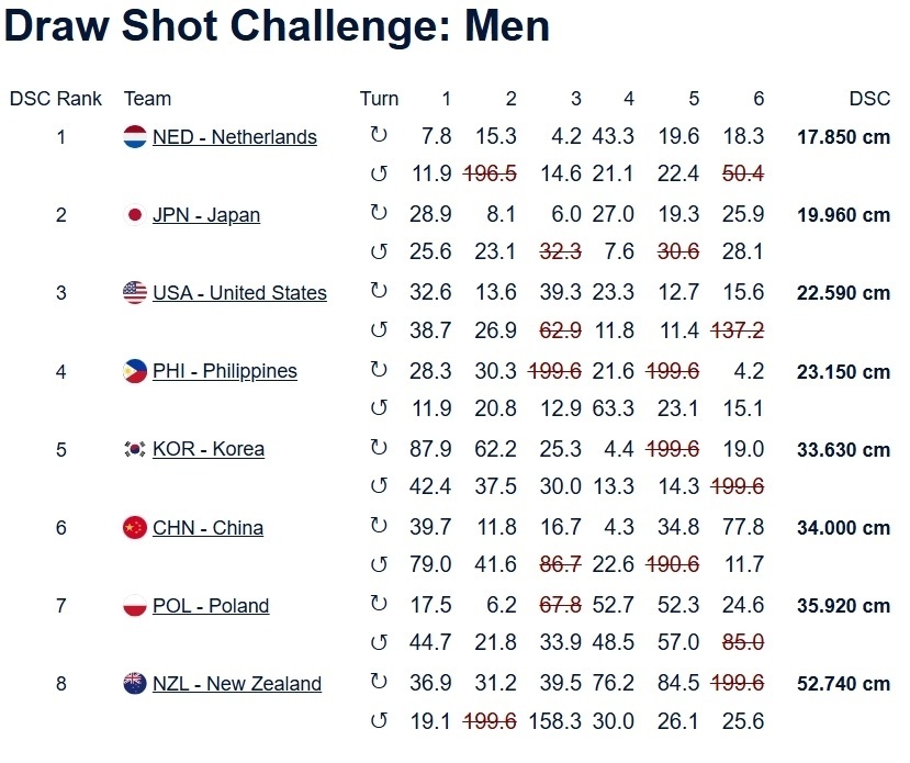 共有中国、日本、荷兰、新西兰、菲律宾、波兰、韩国、美国这8支队伍参加落选赛,角逐最后2个米兰冬奥会男子冰壶参赛席位。