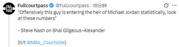 2025-12-11 08:50北京时间12月11日,前NBA球员纳什在节目中谈到了亚历山大,并表示亚历山大从进攻端的数据上看已经能比肩迈克尔-乔丹了。
