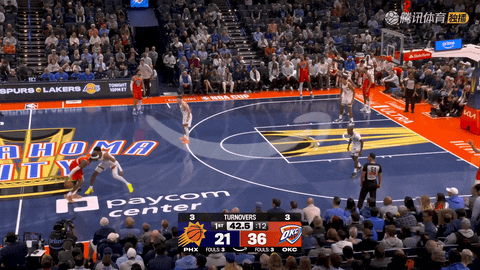 此后雷霆继续施压,从第三节还剩11分36秒时的48:76一路打到还剩3分08秒时的62:105,在8分28秒内打出17分攻势,将分差从领先28分扩大至领先43分,期间杰林-威廉姆斯在还剩3分08秒时空切上篮命中。第三节还剩7秒时,肯里奇-威廉姆斯命中三分,第三节节末压哨,古德温外线三分飚进,太阳将比分追到72:110。