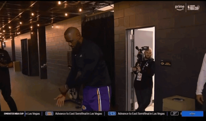 2025-12-11 11:30北京时间12月11日,NBA杯淘汰赛,湖人对阵马刺赛前,詹姆斯在球员通道内打起了“空气高尔夫”。