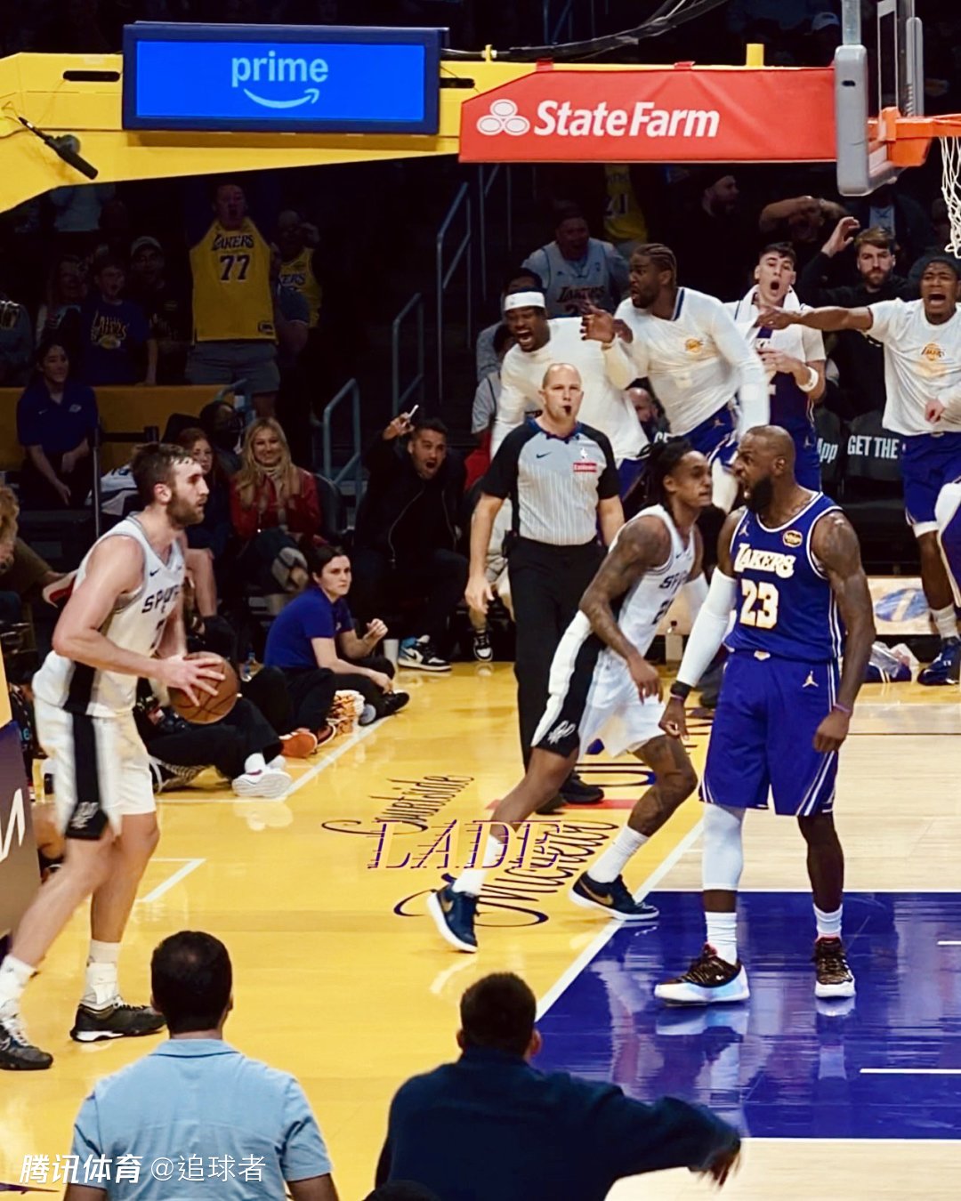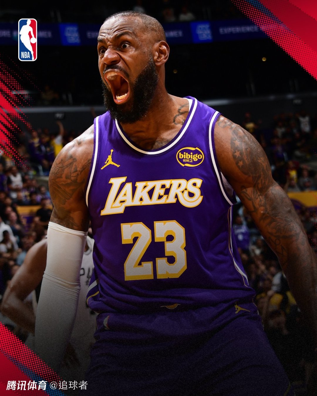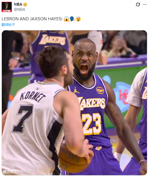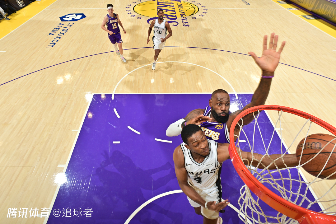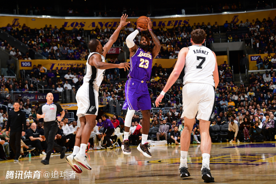 第二节湖人一直被马刺压制,而且单节28-31又输3分,半场打完湖人落后12分;这一节詹姆斯6投3中拿到6分6篮板2次盖帽,防守端追身钉板大帽福克斯,进攻端打成炸裂一扣——持球杀到禁区隔扣2米16的科内特,激情怒吼庆祝,残暴隔扣瞬间冲上热搜引全美热议。