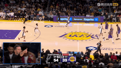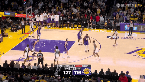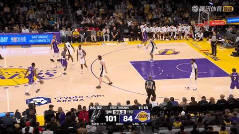 最后还剩27秒时,克内克特接拉拉维亚传球命中三分,为湖人打进本队本场最后一球,马刺始终保持着明显领先优势。