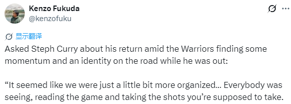 明日复出!库里亲承乐观出战:球队在客场打出应有表现令人欣喜