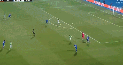 贝蒂斯的进攻打到右路,安东尼高速插上,对萨格勒布迪纳摩的后场实施高强度压迫。慌乱之中,萨格勒布迪纳摩后卫和出击的门将配合失误,距离球门20米处,安东尼左脚外脚背凌空弹射,轻松将球送入空门!