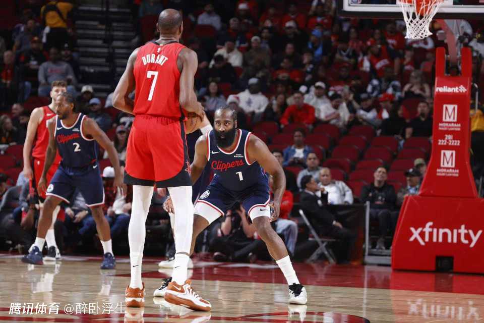 火箭半场落后快船3分:杜兰特7中1遭小卡12+4+3完爆 哈登战旧主
