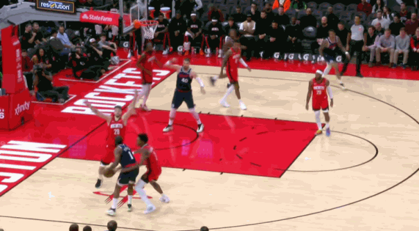莱昂纳德把球一抛,科林斯空接扣篮!