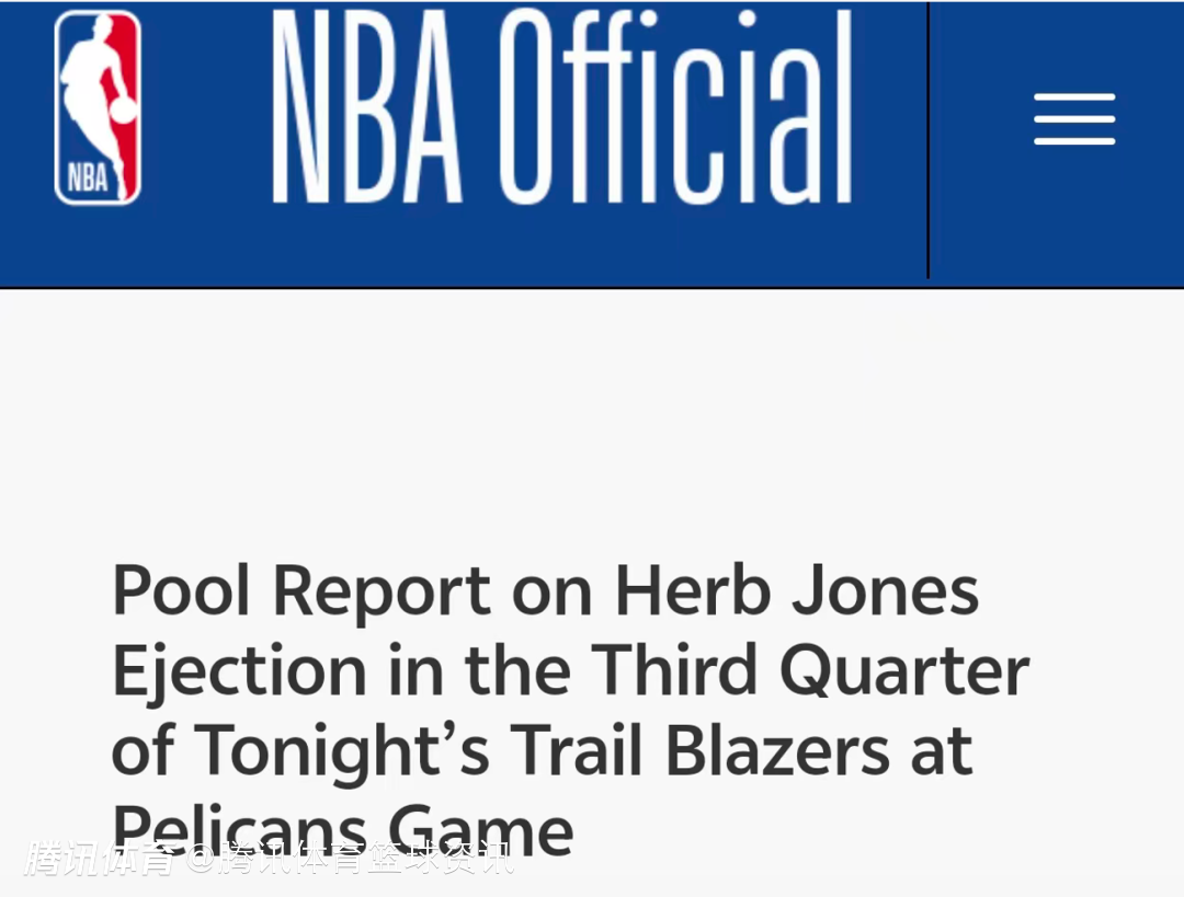 裁判详解鹈鹕琼斯遭驱逐:先辱一名裁判再喷两人 连续技犯直接罚出场