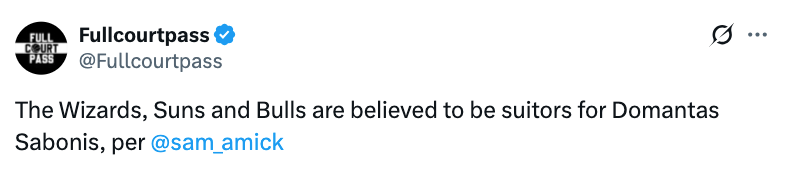 2025-12-13 00:50北京时间12月13日,据美记Sam Amick报道,奇才、太阳与公牛被认为是小萨博尼斯的潜在追求者。
