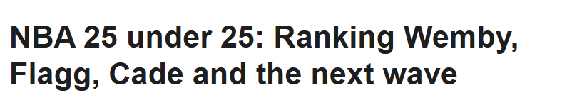 2025-12-13 05:20北京时间12月13日,ESPN评选了联盟25岁以下的25大球星,