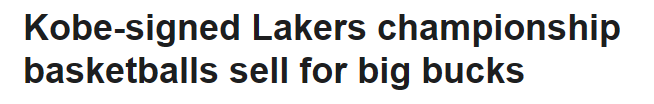 湖人两冠传奇用球拍卖落幕!科比签名球最高拍出50.8万美元破纪录