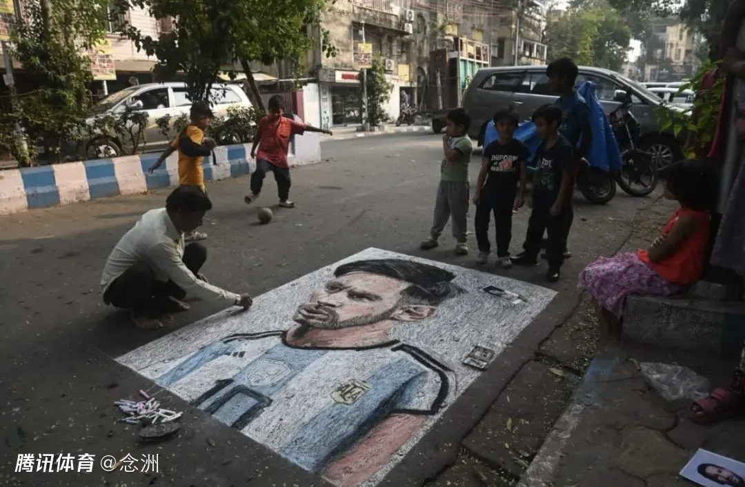 梅西此行引发了印度民众的追星热潮,有一名印度球迷在地上画了一幅梅西的肖像画,栩栩如生。他的阿根廷队10号球衣更是在加尔各答热销。
