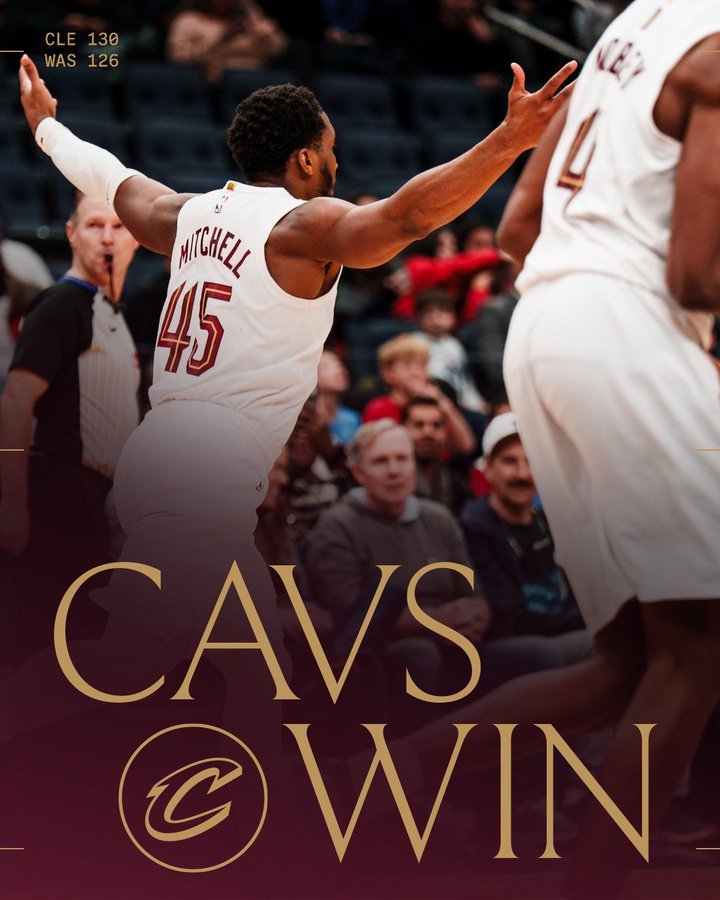 米切尔在第四节独得24分,全场轰下48分,帮助克利夫兰骑士队以130-126逆转战胜华盛顿奇才队。两队均经历了五天休整期,骑士队全场三分球53投仅15中。若非米切尔15投8中的三分表现,情况本会更糟。