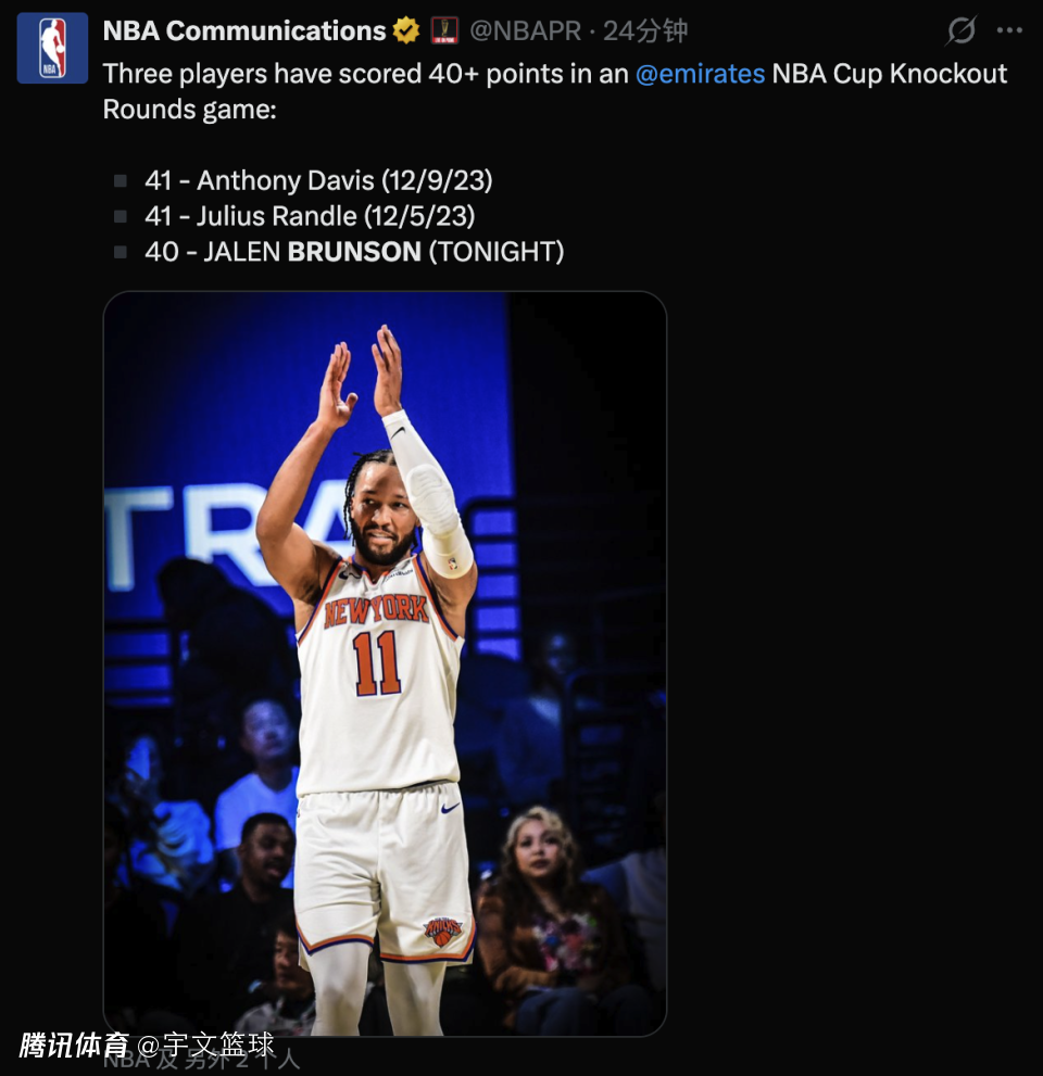 首先,布伦森单场40分刷新赛季得分新高,此前最高为37分;