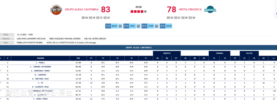 2025-12-14 10:20北京时间12月14日,中国男篮国手余嘉豪继续给力表现,他在此前连续两场得分上双后,让他如今重回首发。余嘉豪在西乙第11轮贡献12分7篮板1助攻,留洋首次连续3场得分上双,帮助坎塔布里亚以83-80险胜Menorca。