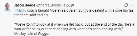 在谈到萨格斯的情况时,莫斯利说道:“他的髋部有些酸痛。他今晚确实遭到了不少针对,对抗很激烈。目前来看,就是髋部酸痛的问题。第二节末段他打成2+1后,在地上缓了好一会儿,可能是撞到了旧伤的部位。我们回去之后肯定会详细检查评估,但说实话,他带着伤坚持打完比赛,真的称得上是一名斗士。等回到主场,我们会好好看看他的伤势情况。”