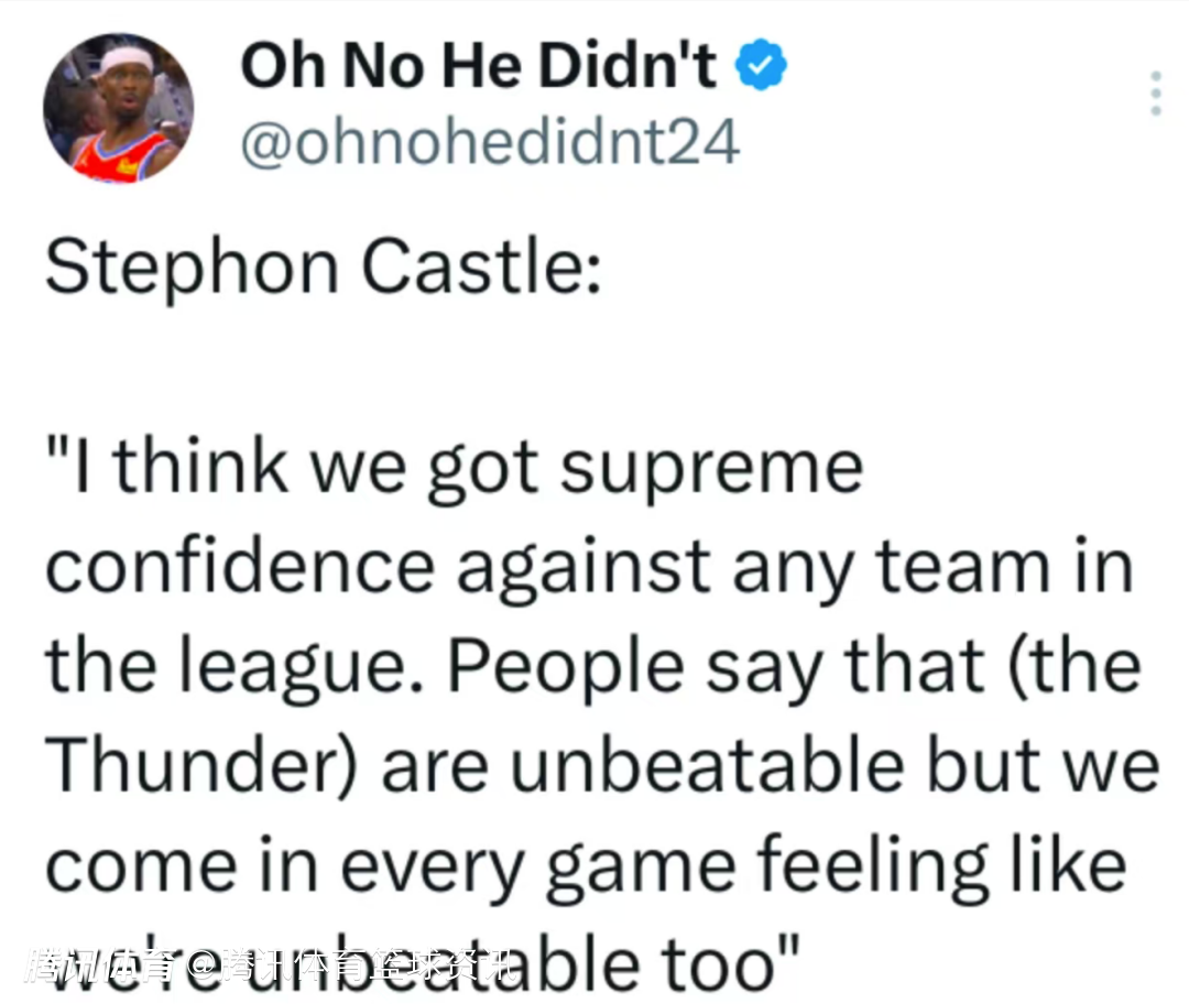 终结雷霆连胜!卡斯尔:人人都说他们不可战胜 这恰恰证明了我们球队的实力
