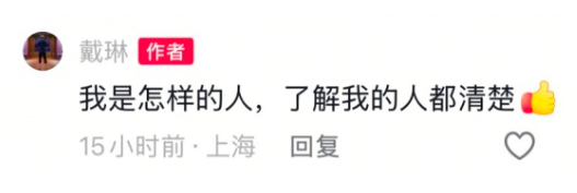 而与此同时,在戴琳的某社媒评论区,有球迷向戴琳质问该事,戴琳回复道:“我是怎样的人,了解我的人都清楚。”