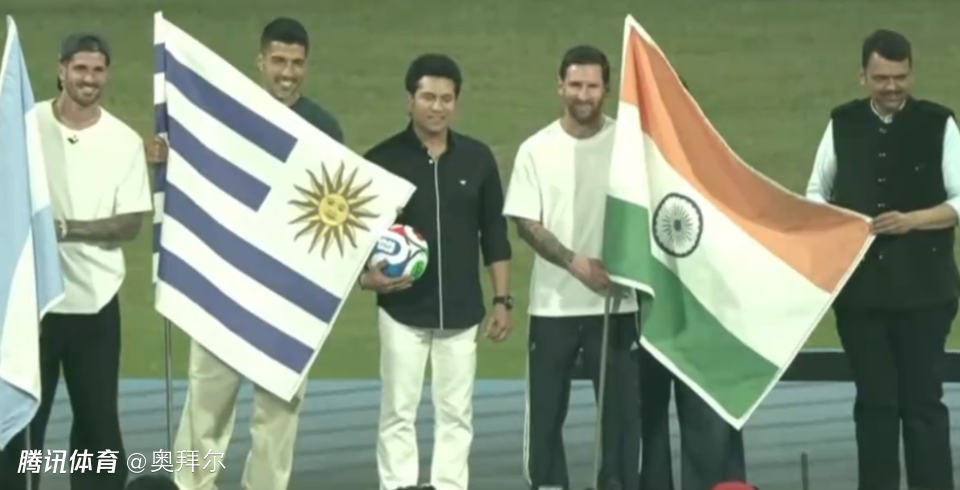 抵达孟买之后,梅西首先出席在布拉伯恩体育场举行的帕德尔GOAT杯,随后在万克赫德体育场参加活动。在比赛结束之后,梅西、苏亚雷斯、德保罗走上球场,梅西象征性地主罚点球并且一蹴而就。随后,三人绕场一周,不断将球踢上看台,印度球迷则打出了“梅西足球上帝”的标语。