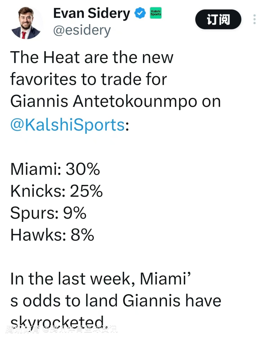 字母哥交易新动向:热火成头号热门 概率领先尼克斯5个百分点