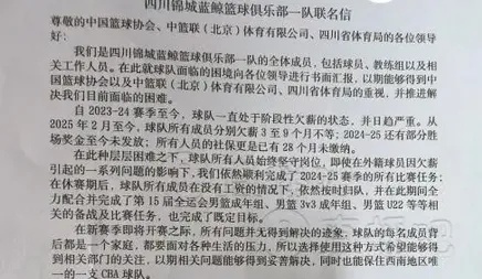 四川男篮球员、教练组一度上书中国篮协,希望能解决欠薪问题,而在新赛季准入情况,更是引发外界的广泛关注。