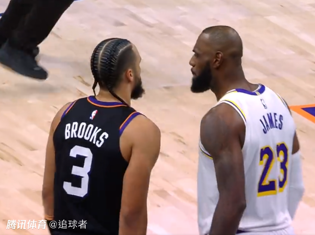易边再战,第三节太阳进攻大幅下滑,尤其是这一节最后5分钟,太阳全队哑火,湖人打出一波15-0的超级攻势,三节打完湖人86-77反超9分;期间詹姆斯彻底被狄龙惹怒了,后者拿球砸到老詹的头,随后老詹十分生气,抓着裁判的左手喋喋不休,八村垒一直拦着老詹,最终詹姆斯吃到技术犯规。