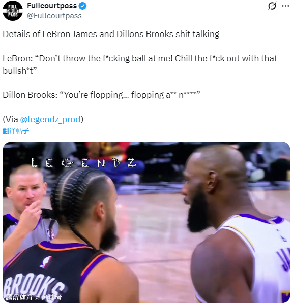 2025-12-16 11:00北京时间12月16日,在湖人击败太阳的比赛中,詹姆斯和狄龙之间多次发生激烈对抗,期间詹姆斯一度气得抓着裁判狂喷垃圾话,究竟他们之间都说了哪些垃圾话?美媒解读唇语,詹姆斯爆粗怒骂狄龙软蛋,狄龙嘲讽老詹假摔。