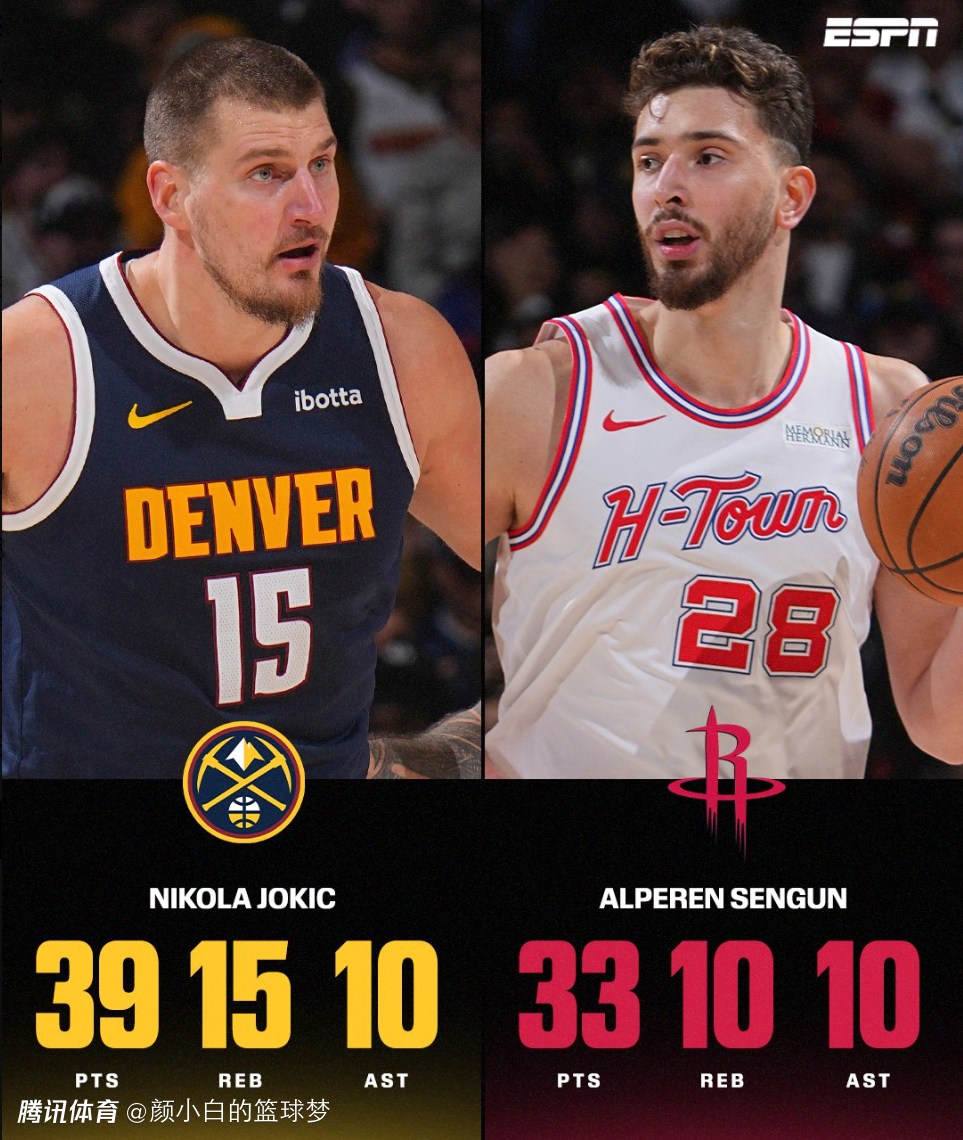 2025-12-16 14:40火箭3分惜败掘金,约基奇鏖战43分钟拿到39分15篮板10助攻2抢断2盖帽,申京鏖战42分钟拿到33分10篮板10助攻2抢断1盖帽,两位联盟最顶级的中锋都拿到30+三双的数据,但赛后却没有人讨论数据。
