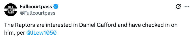猛龙队记:球队对加福德感兴趣 并且已经询问过相关情况