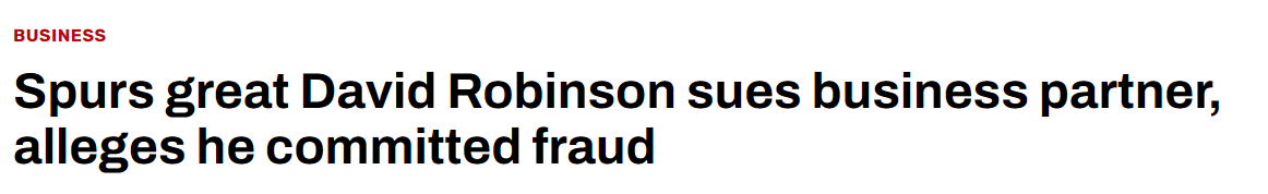 马刺名宿大卫-罗宾逊起诉合伙人 指控挪用资金索赔3400万美元