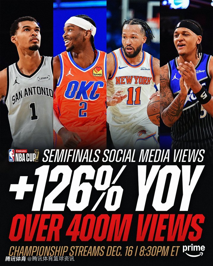 2025-12-17 07:00北京时间12月17日,根据NBA官方发布的消息显示,2025年NBA杯半决赛的社交媒体播放量同比激增126%,全平台累计播放量突破4亿次。该数据统计来源于视频数据统计机构Videocites。