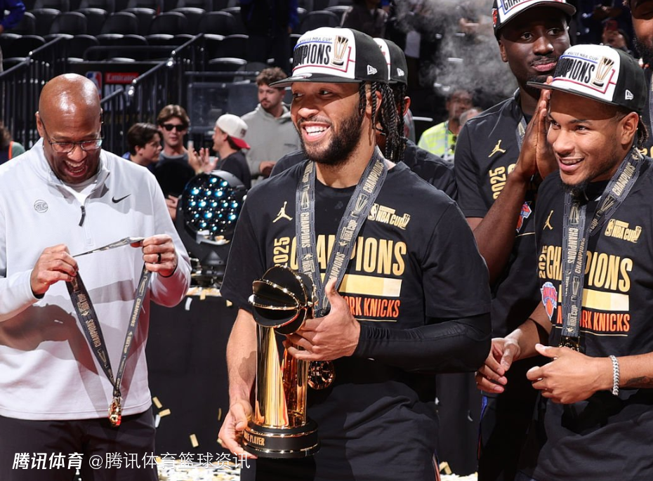 2025-12-17 12:40北京时间12月17日,NBA杯冠军赛结束争夺,尼克斯以124-113战胜马刺夺冠。本场比赛中,布伦森出场41分钟,全场27投11中,其中三分5中1,罚球4中2,拿到25分4篮板8助攻2盖帽,当选NBA杯MVP。在本届NBA杯的淘汰赛阶段,布伦森场均得到33.3分6.7助攻,投篮命中率55%。布伦森成功当选NBA杯MVP,成为NBA第3位获得NBA杯MVP的球员,前两位是詹姆斯和字母哥。