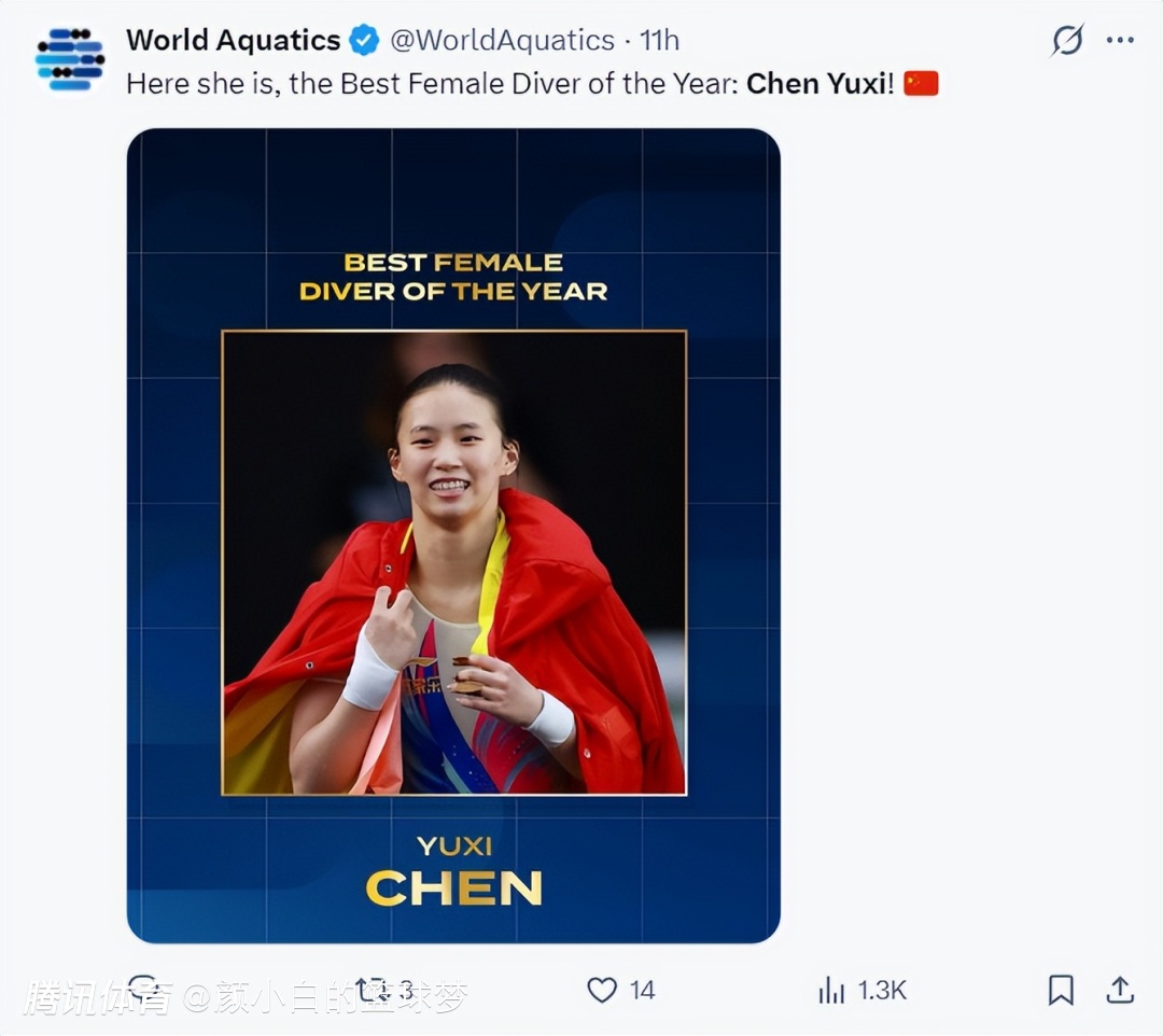 2025-12-17 14:30北京时间12月17日,世界泳联公布了2025年年度女子跳水最佳运动员,20岁的中国选手陈芋汐获得了这一殊荣,乐乐在整个2025赛季尽显统治力。