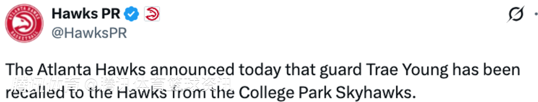 复出在即!老鹰官方:已从G联盟附属球队天鹰队召回特雷-杨