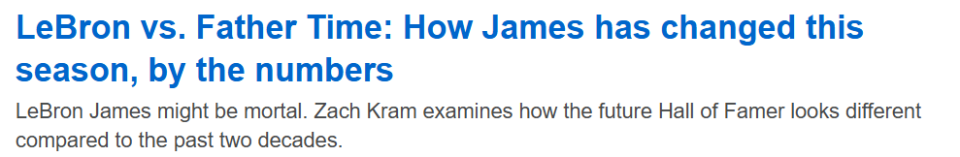 不过,即便詹姆斯的赛场表现能有所回升,逐渐接近生涯平均水准,他的打球风格或许也已发生了永久性的改变。