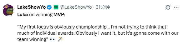 再添荣誉!东契奇公开透露两大目标:全力争夺MVP和剑指总冠军
