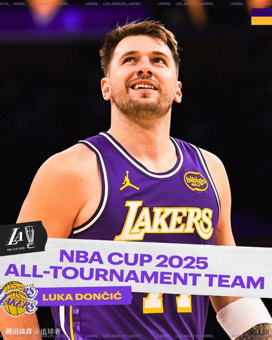 2025年杯赛,湖人晋级淘汰赛却被马刺淘汰出局,东契奇在杯赛舞台上场均轰下36.2分7.6篮板10助攻,虽然湖人早早出局,但东契奇入选了杯赛最佳阵容,湖人官方晒晒海报祝贺,配文写道:卢卡再添一项荣誉。
