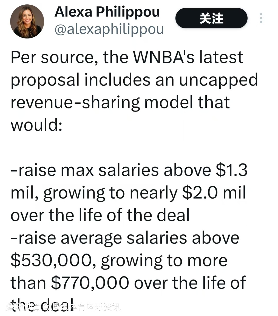 WNBA最新薪资提案出炉:顶薪近200万均薪77万+ 采取无上限分成模式