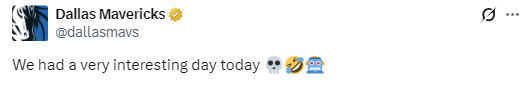 独行侠队官方则发文评价此事:“我们今天度过了非常有趣的一天。”