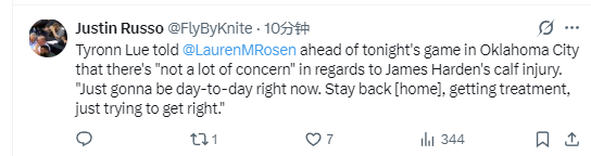泰伦-卢:并不担心哈登的伤病问题 让他休战是恢复健康的明智之举