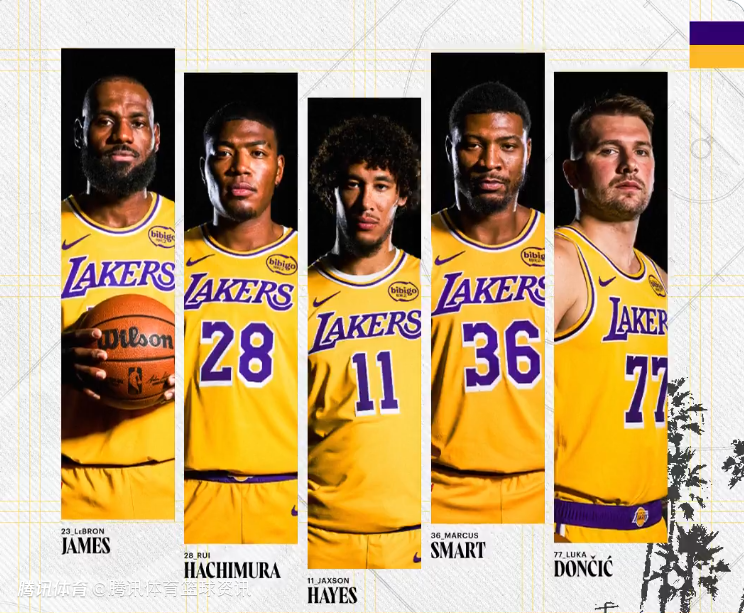 湖人队的首发阵容为:詹姆斯、八村垒、海斯、斯马特、东契奇。这是湖人队本赛季首次使用这套首发阵容,艾顿、里夫斯、布朗尼和文森特缺席本场比赛。