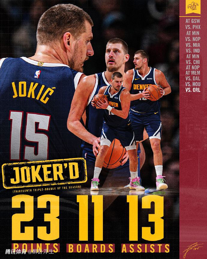 进入末节比赛,小哈达威率先连得5分重新扩大20分优势,魔术持续反扑追到个位数差距。约基奇助攻卡约命中关键三分,魔术无力回天,最终掘金126-115战胜魔术豪取6连胜。