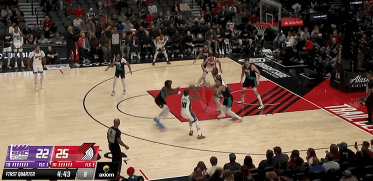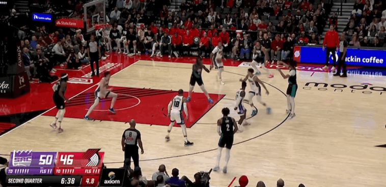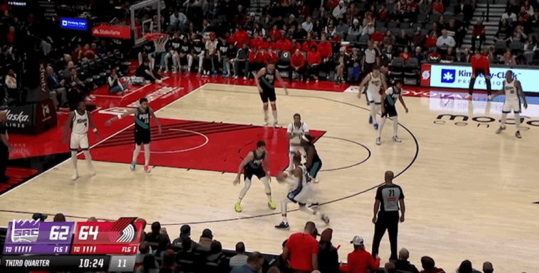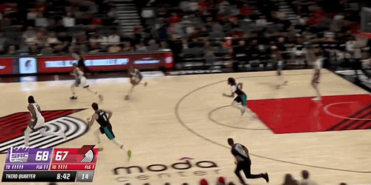 次节比赛开始,施罗德包揽国王开局前6分,格兰特三分命中,卡马拉和阿夫迪亚连续得分,克利福德抛投打进。克林根补篮得手,雷纳德2罚全中,罗威空切扣篮,乐福突破得手。卡德威尔转身勾手,夏普撤步跳投,德罗赞扣篮得分,威少上篮打进。夏普三分命中,开拓者打出一波9-0的进攻高潮,雷纳德2罚全中,埃利斯跑动扣篮,克林根补篮得分。