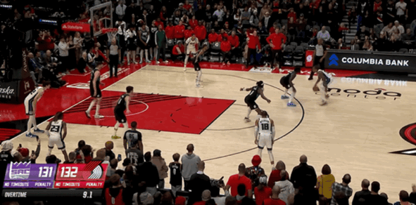 埃利斯和威少连续造成犯规5罚全中,国王打出一波进攻高潮,关键时刻夏普2罚全丢,阿夫迪亚出现致命失误。开拓者只能采取战术犯规,想要和对手拼点球,威少2罚全中,国王以14-0的进攻压制,在最后13.9秒追分到1分。阿夫迪亚2罚1中,但是国王没能把握关键篮板,克林根2罚1中,给到国王再次扳平比分机会。德罗赞三分命中扳平比分,格兰特错失绝杀三分,双方进入加时。