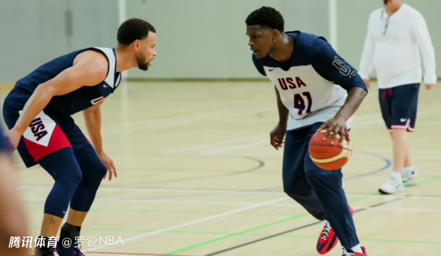 爱德华兹:是啊,我当时还拍了好几张照片。按理说,替补席上是不准玩手机的,这是规定。但我当时心想:“管他什么规定呢,去他的规定。”我从八年级起就和安德玛签约了,那时候我就总穿库里的球鞋。几年后我参加了他的篮球训练营,后来又进入NBA,还和他一起征战奥运会。看着他为人处世那么随和亲切,再看到他脚上穿着我的签名鞋 —— 那一刻,我感觉自己又变回了那个小男孩。所以我当时必须得拍几张照片留念。就跟普通人见到明星路过一样,赶紧掏出手机抓拍,当时我就是那个样子。