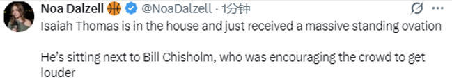凯尔特人队记者Noa Dalzell就发文写道:“小托马斯来到了现场,刚刚收获了全场观众热烈的起立鼓掌。他坐在比尔-奇泽姆身旁,比尔-奇泽姆刚才还在带动观众们欢呼得更响亮一些。”