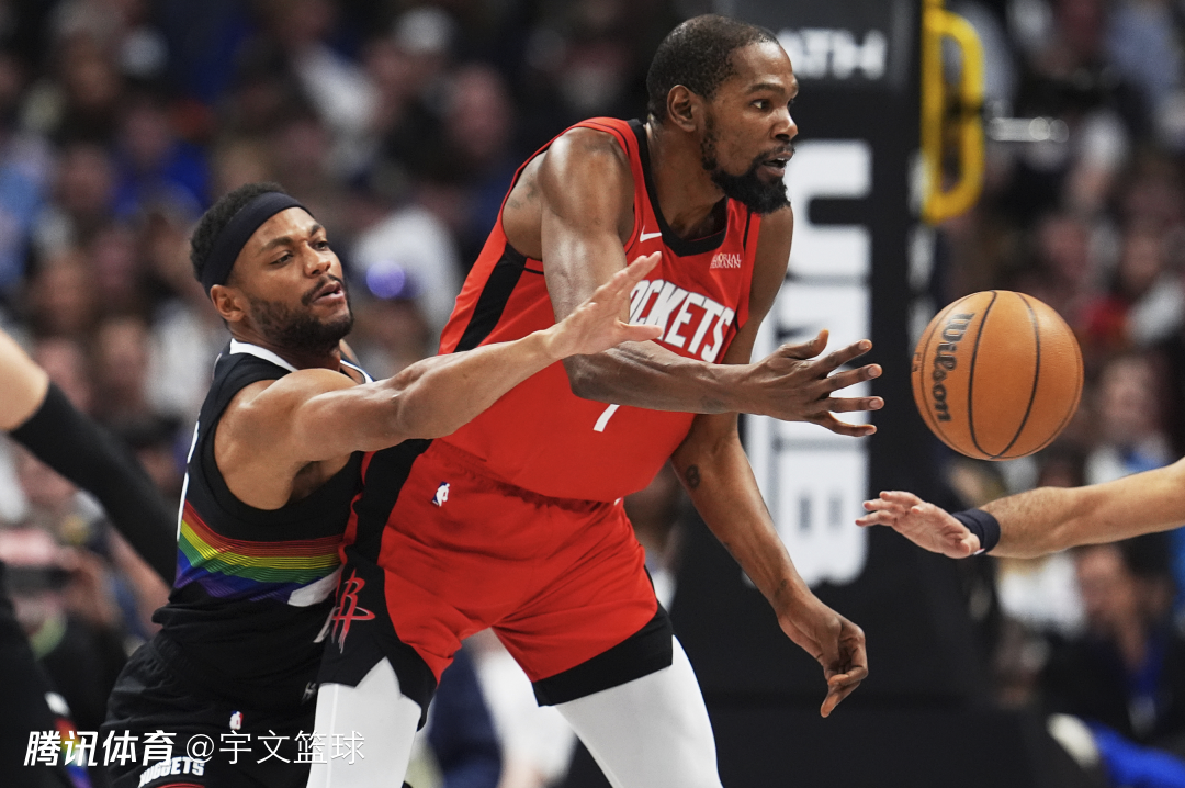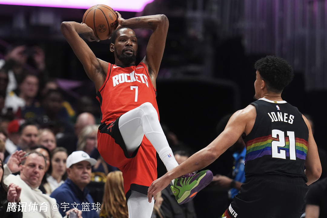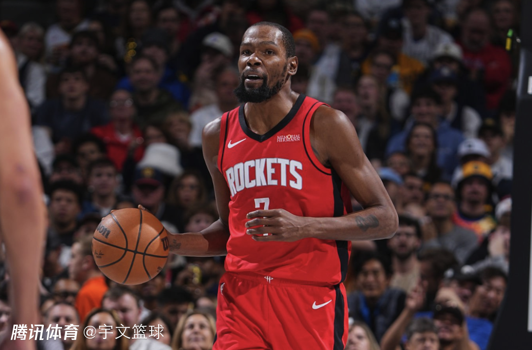 易边再战,杜兰特助攻小史密斯三分命中,引领火箭多点开花,打出内外兼修的侵略性进攻表现,试图进一步扩大领先优势。杜兰特仍然在中远距离投射带来很大的威胁,成功命中招牌的翻身跳投,依旧是火箭阵中发挥最稳定的球员。