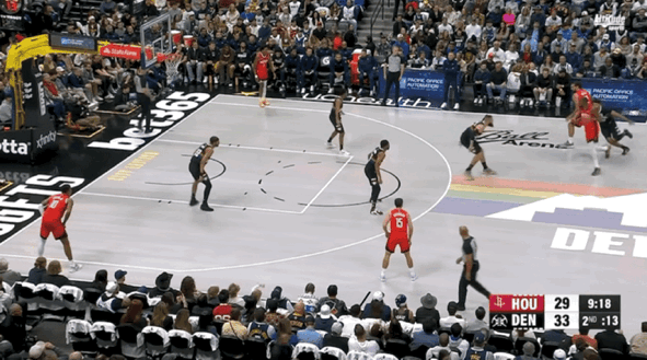 杜兰特首次三分出手命中,帮助火箭打出10-2的高潮开局,不过他在后续比赛里遭到对手严防,掘金宁愿送他罚球也不愿让他空位投篮的机会,掘金打出18-7的压制进攻反超。替补登场的谢泼德发挥神勇实现三分三连击,帮助火箭及时止损,穆雷三分还以颜色,火箭落后3分结束首节比赛。