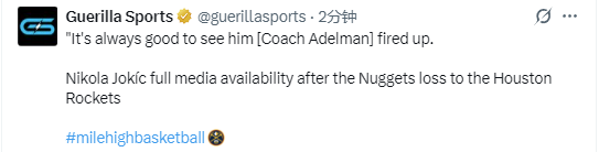 2025-12-21 10:00北京时间12月21日,NBA常规赛继续进行,火箭队115-101击败掘金队。掘金队球员约基奇此役得到25分7篮板5助攻,赛后他接受媒体采访。