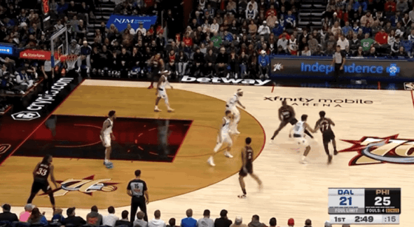 本场比赛为新科状元弗拉格和探花埃奇库姆之间的正面对决,弗拉格和浓眉双状元携手登场,面对没有恩比德且背靠背作战的76人,独行侠欲在客场取得比赛胜利。首节比赛,弗拉格造成犯规2罚全中,为独行侠取得首次得分。埃奇库姆打进2+1,弗拉格上篮得手还以颜色,帮助独行侠打出一波7-0的进攻高潮。