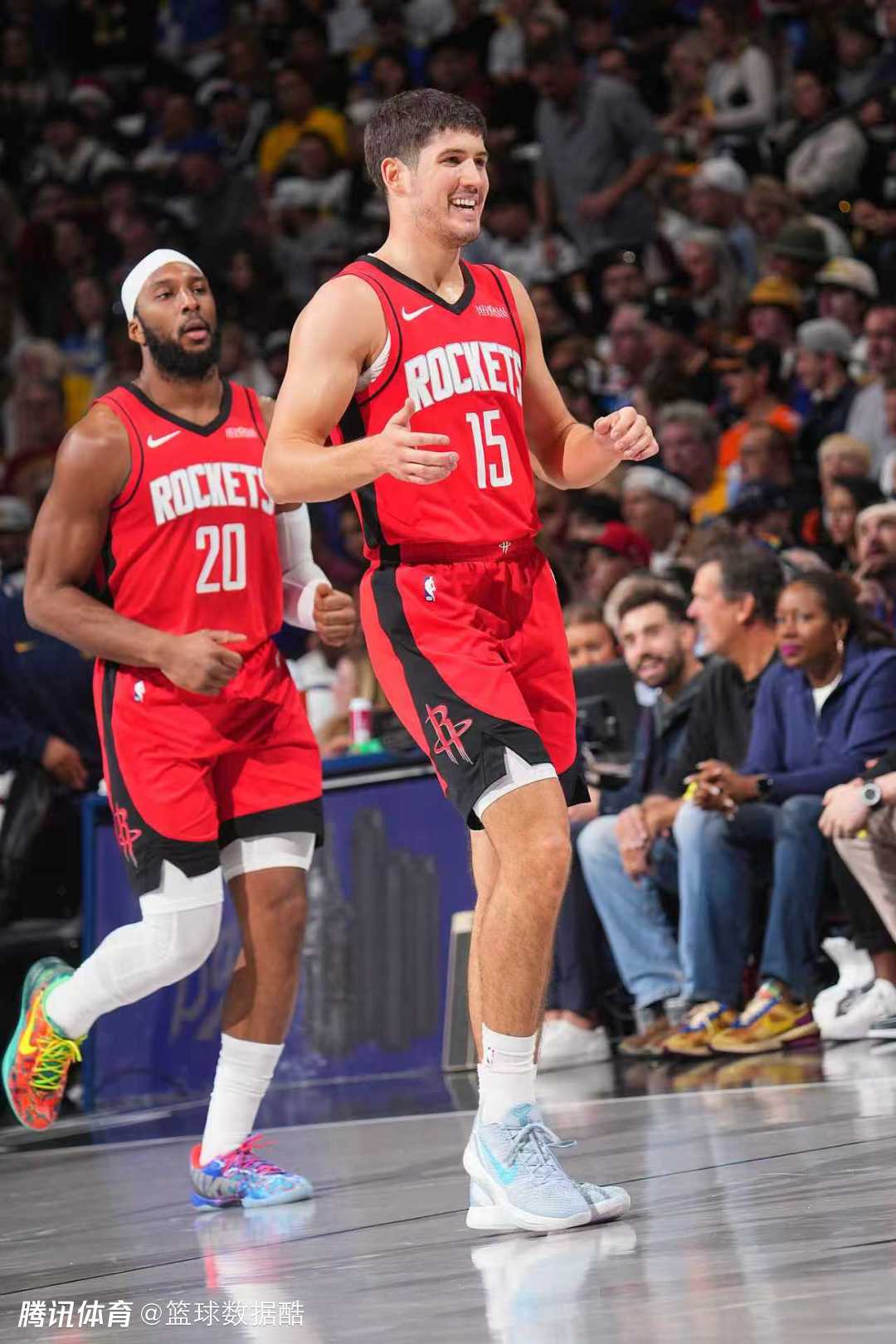 2025-12-21 11:50火箭客场115-101复仇掘金,全场比赛,谢泼德出战29分钟,15中9,三分9中6,罚球4中4,轰28分2板5助3断2帽,成为了火箭赢球功臣。